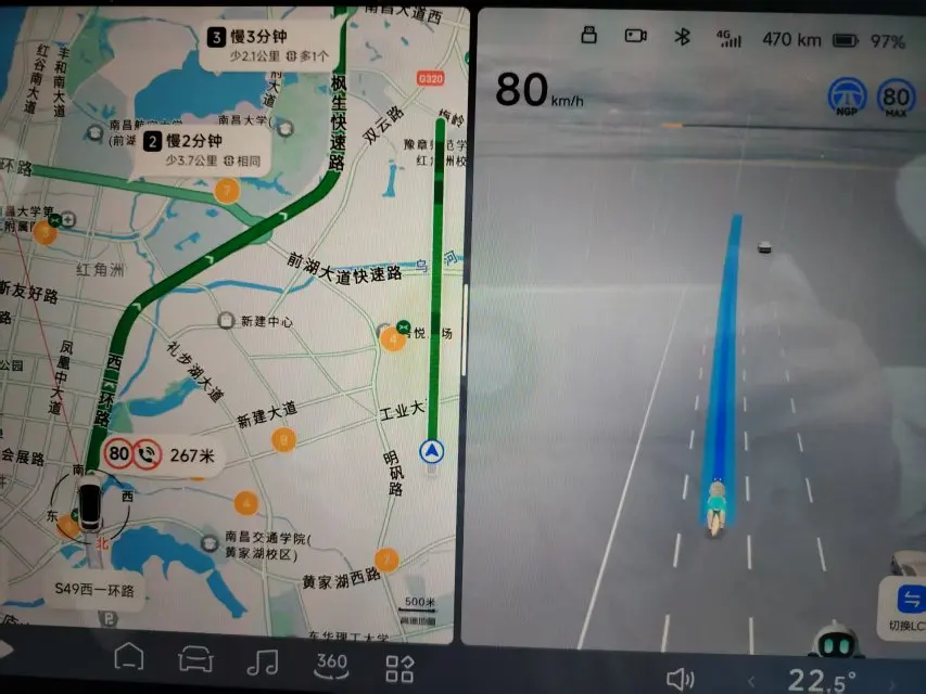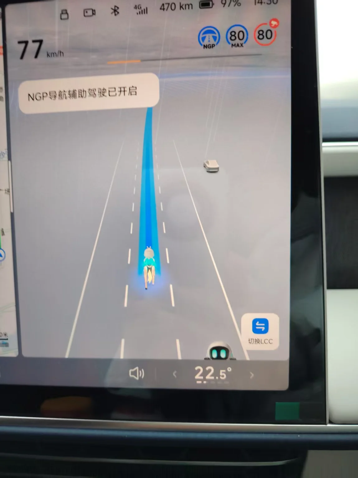 出来的比较晚,下雨天路上车不多,升级后电池虚标了15公里,但NGP还是一样好用,感觉时不时眯了一下😛,小马车标陪伴,太省心了,就是开空调电掉的厉害。