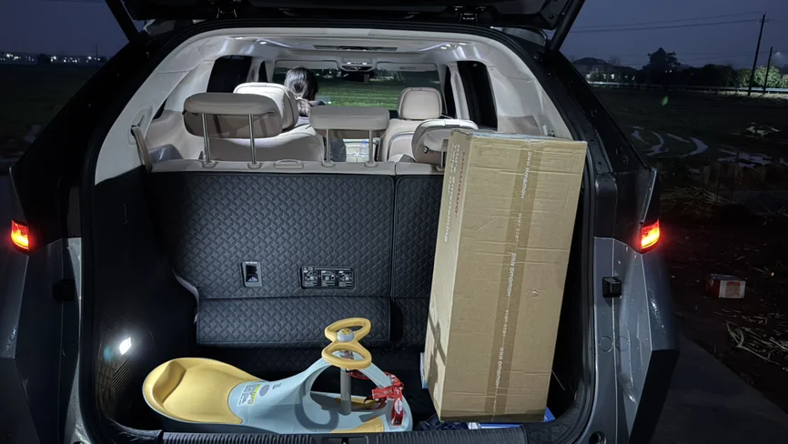往年回家,后备箱总被年货塞得满满当当,儿子的玩具往往只能见缝插针,像扭扭车这种大玩具就只能不带回家了。今年不一样了,7.7平米移动空间里,他的热爱终于有了专属座位。看着孩子趴在车旁,给扭扭车系上“安全带”的认真模样,我突然懂了——过年带回家的,不该只是生活的妥协,更是这份毫无保留的欢喜。