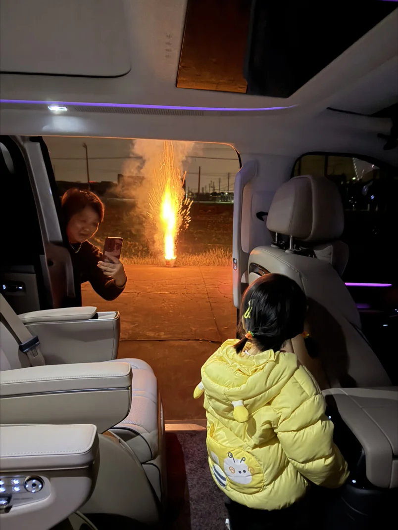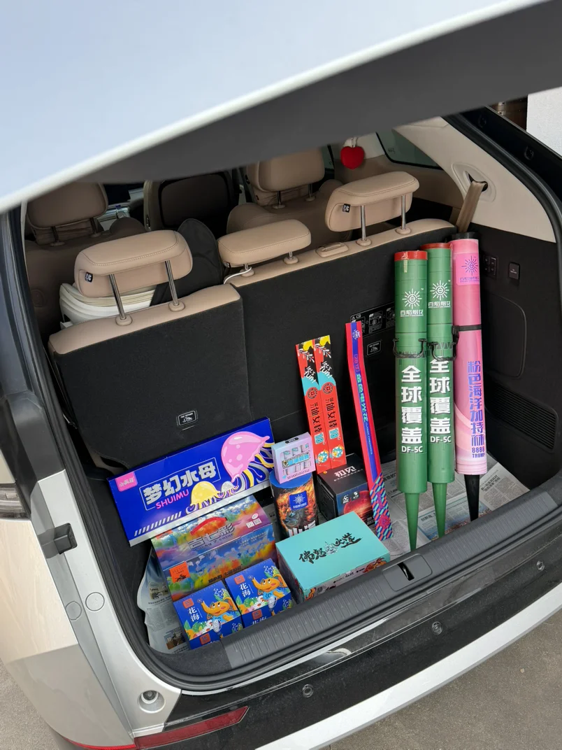 把烟花塞满小鹏X9后备箱,一晚上就放完了大半……娃的快乐就是如此简单。今年的烟花明显降价了,加特林也没那么贵了,娃在车里看着我们放烟花,快乐值拉满了。放完回家,村里回去也可以0接管,NGP太好用了,真的离不了了……#定格我的精彩瞬间# #开着小鹏回家过年# #鹏友新春时刻#