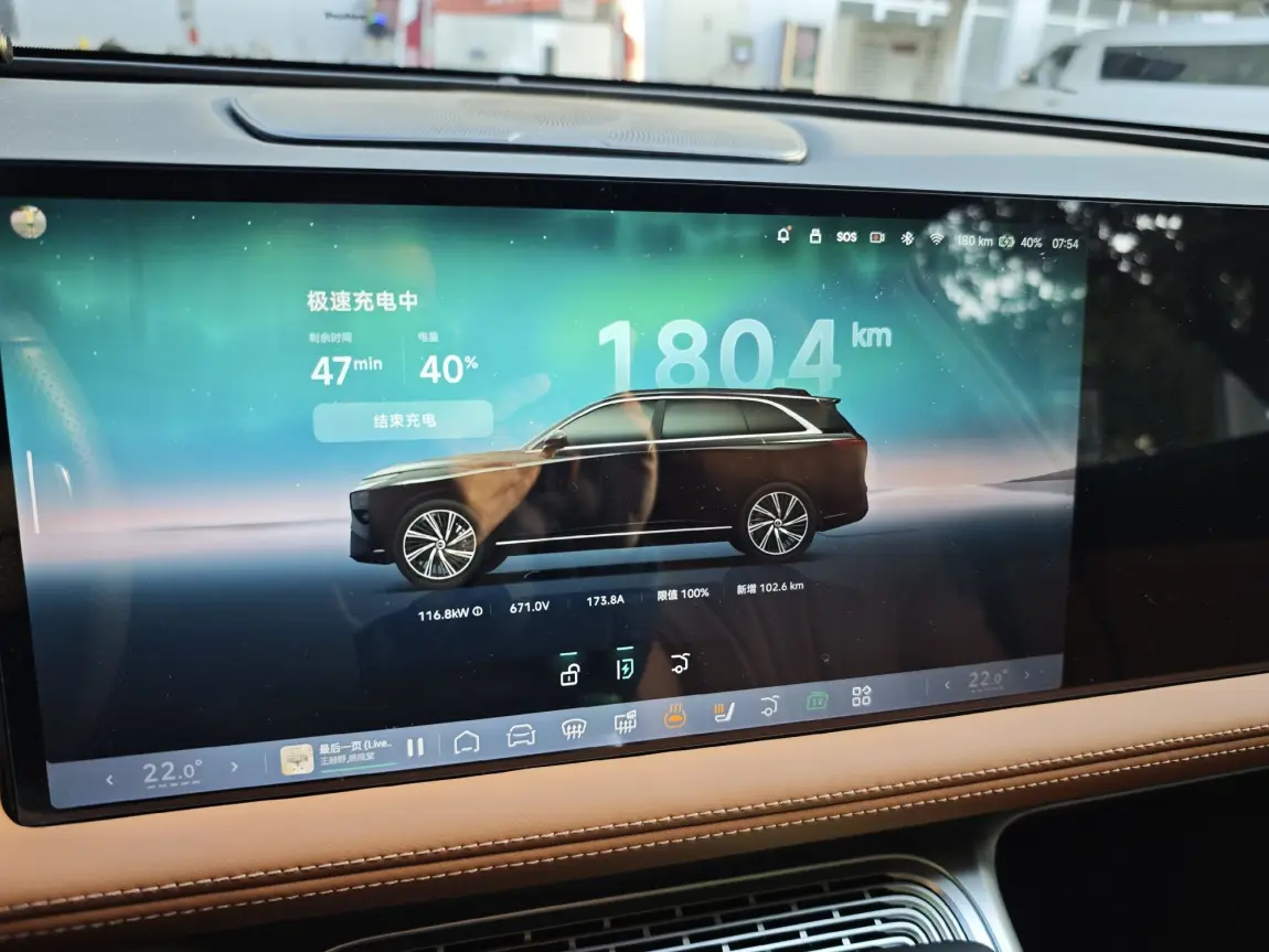 出发前就在小鹏APP上规划好了路线,系统自动标注了沿途的小鹏超充站,还能实时显示充电桩占用情况。第一站停在服务区的小鹏超充站,红红灯笼挂在充电桩旁,年味直接拉满!扫码即充,不用下车操作,在车里刷会儿视频的功夫,电量就从30%冲到了80%,才花了20多分钟,比加油还省时间。