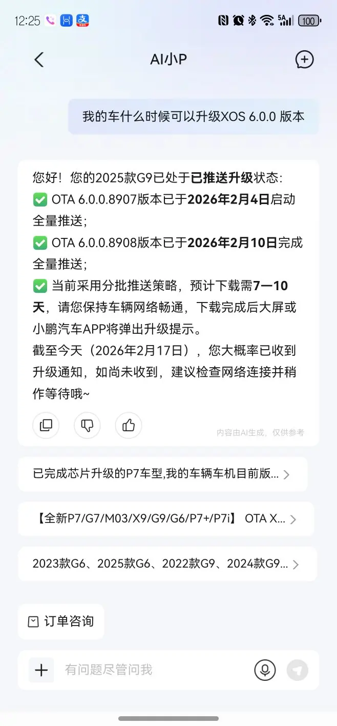 2025款G9的车友们,你们有收到OTA6.0的推送吗?