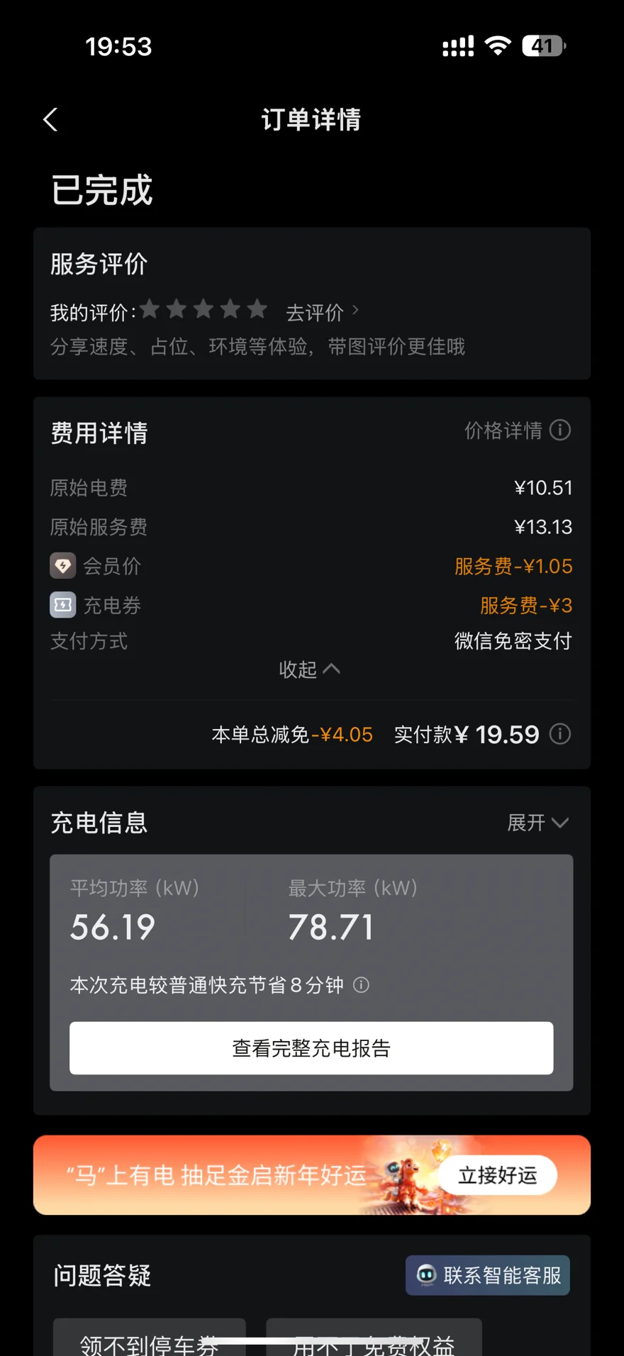 平常中午去根本抢不到充电桩 大年30那天竟然没人去跟我抢哈哈哈哈哈 太香了 还要夸夸我的管家有一次我半夜充电插上没反应 发信息给管家管家秒回 👍👍这个真的要夸