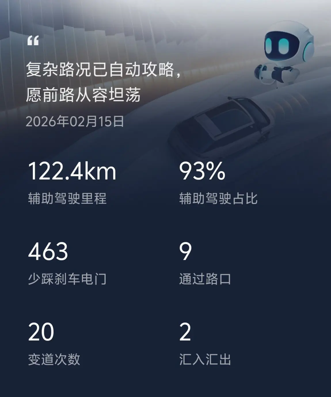 更新天玑6.0系统后第一次用更新后的智驾跑长途回老家,感觉更像后的小p比以前更丝滑,智驾更好用了,这次回家全程93%的比例足以说明我对智驾的满意了