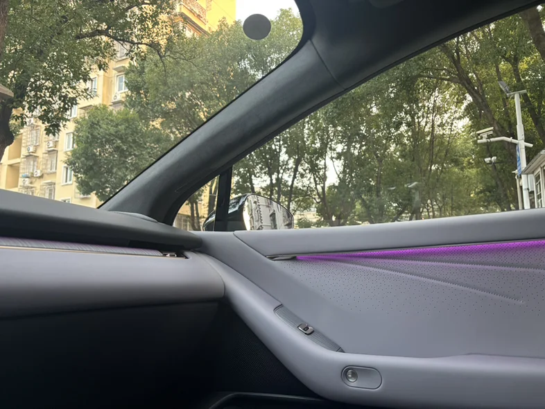 4.内饰的豪华程度,如果将购车比做购房,那么车内的内饰就像房间的软装,26款P7+新增加的柔光紫加上隐藏空调出风口和全车的氛围灯让我对这个“家”的装修格外满意,柔光紫在阳光下是淡淡的紫色,而在夜晚则会显示一种增加空间感的灰色,显得车内更加大,而且非常耐脏!