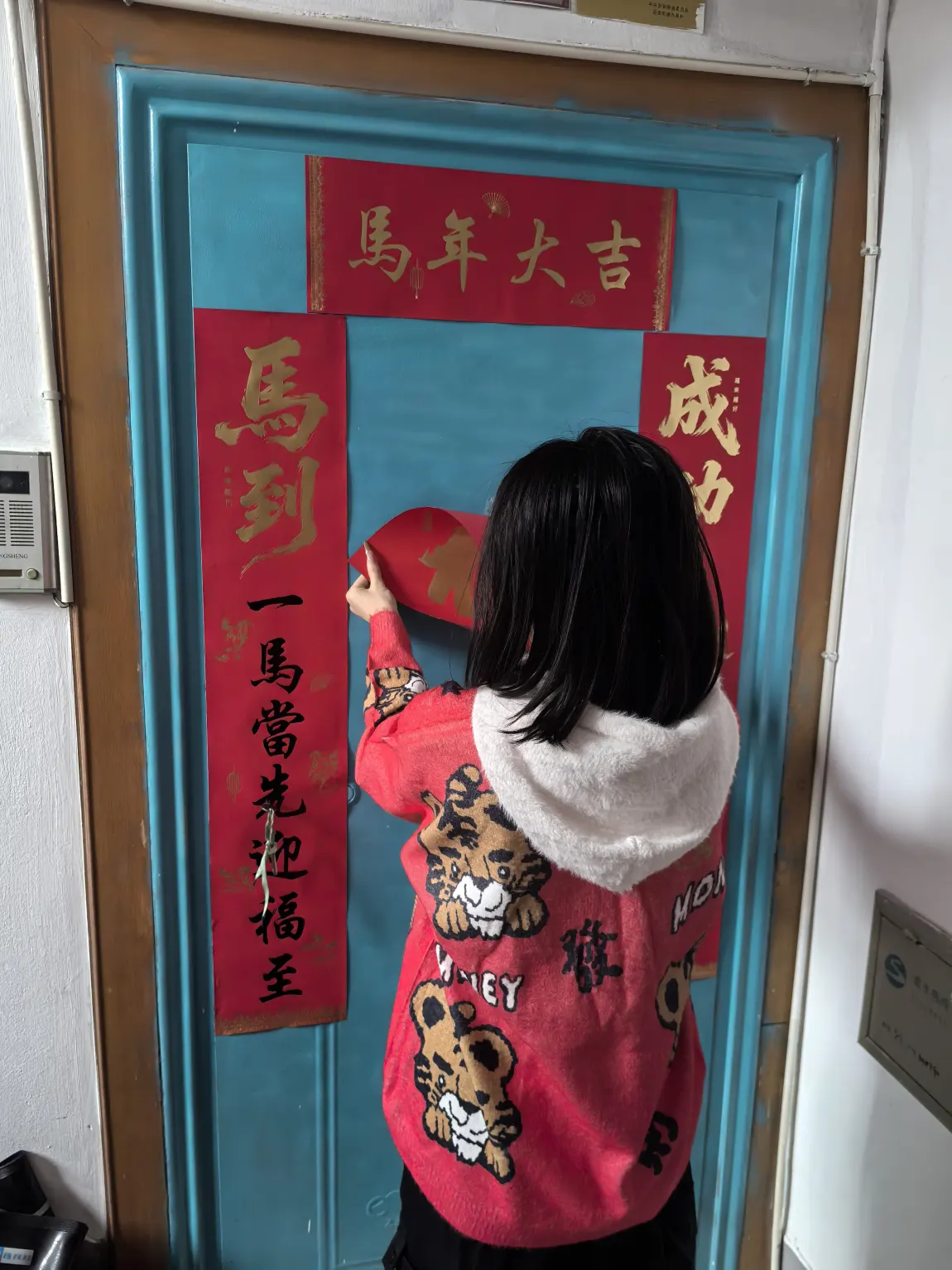 大年初一的清晨,天刚蒙蒙亮,家里就热闹起来了。女儿穿着那件印着小老虎的红毛衣,站在小板凳上,认真地帮我们贴春联。她小手指着“马到一马当先迎福至”的下联,大声地念着,我在旁边扶着横批“马年大吉”,看着她认真的侧脸,心里满是踏实。贴完春联,她又踮起脚尖,把一张大大的“福”字倒贴在门上,笑着说:“福到啦!”