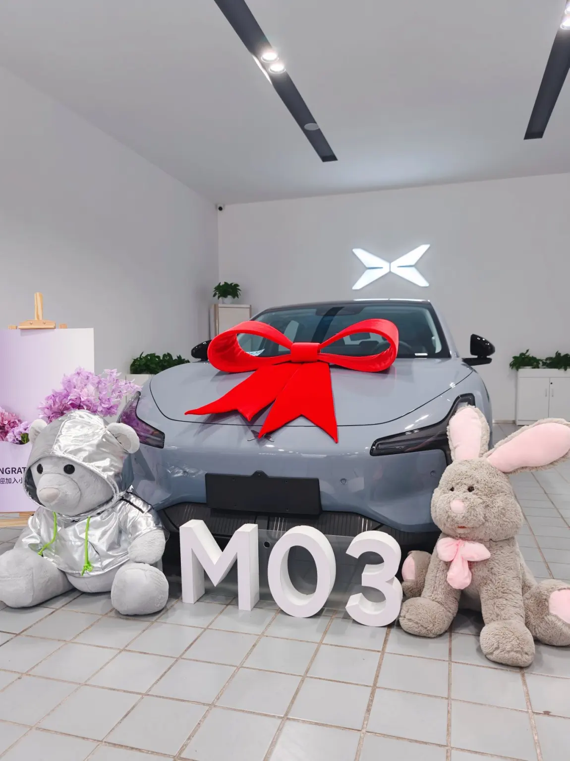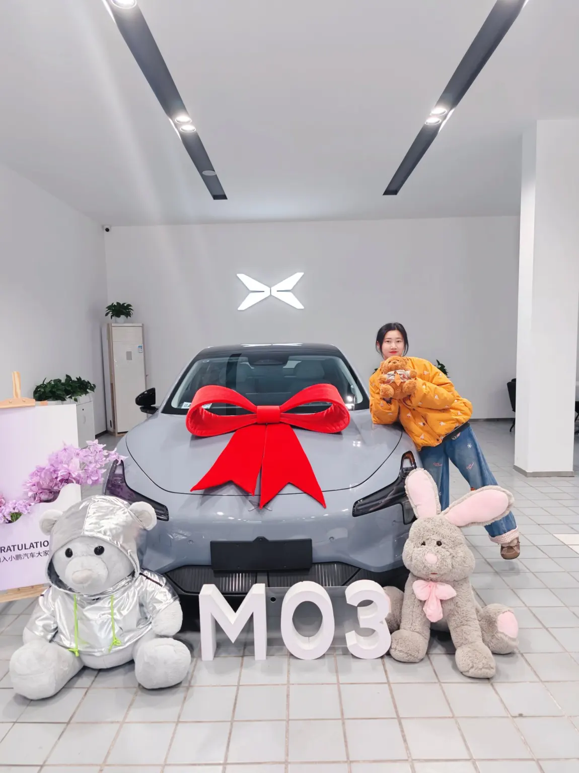 #我的提车作业# 年前的最后几天,家人忽然提起买车,查了一下所有同价位的车,图片上看不出来好不好看,不知道怎么选,碰巧家门口有一辆mo3的紫色,这不就是我的“梦中情车”吗?!赶紧去到小鹏试驾,试过以后我才知道现在的车都进步到什么程度了!自动泊车、自动驾驶什么都有,太适合我这种新手司机啦!可是事情总有不如愿的时候,当天没能直接定下来,家里人还是建议看一看别的牌子多对比,然而我非常坚定,我确定这就是我想要的。和家人沟通好后第二天我直接去店里提了我心爱的灰色MO3(紫色也好好看,但是总觉得灰色又好看有耐看哈哈哈)销售和交付售后的工作人员都很负责,很快就给我弄好了手续,销售小姐姐还给我订了一束美美的花💐