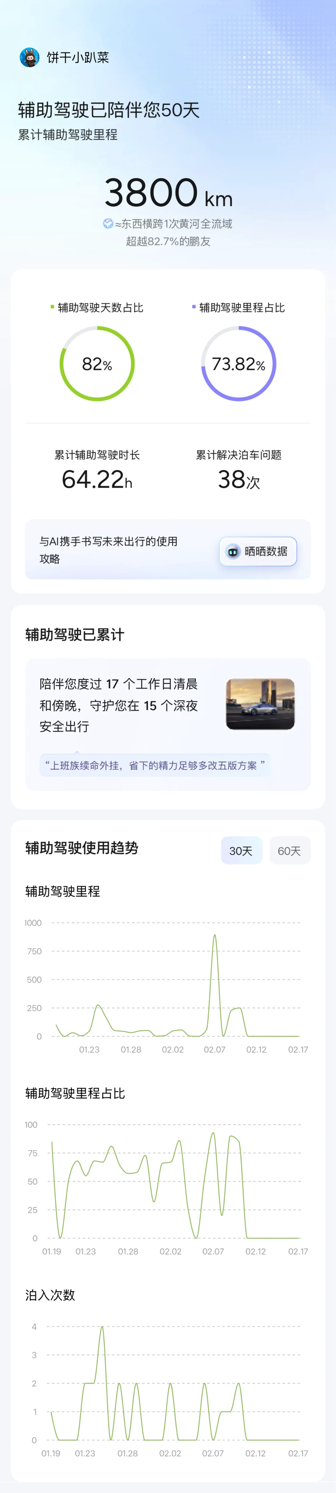 #我的辅助驾驶数据# 小鹏的自驾真的很棒,过年回家,980公里,全程辅助驾驶,比之前开油车轻松很多!