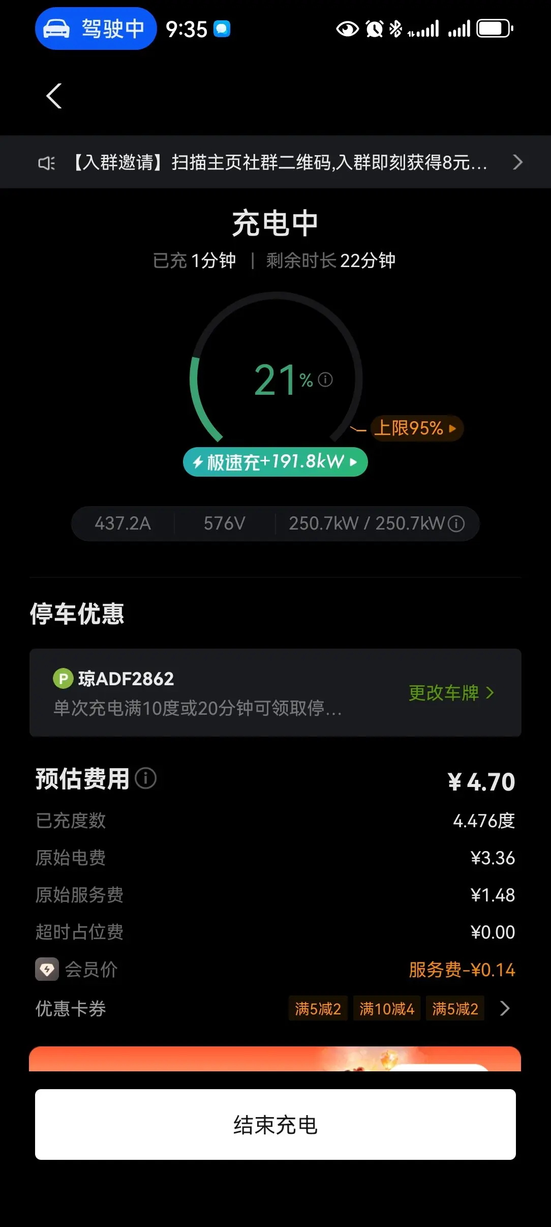 这个超充站速度。不要说1000公里了,跑1万公里也是很OK的。一杯咖啡车子就充满了。