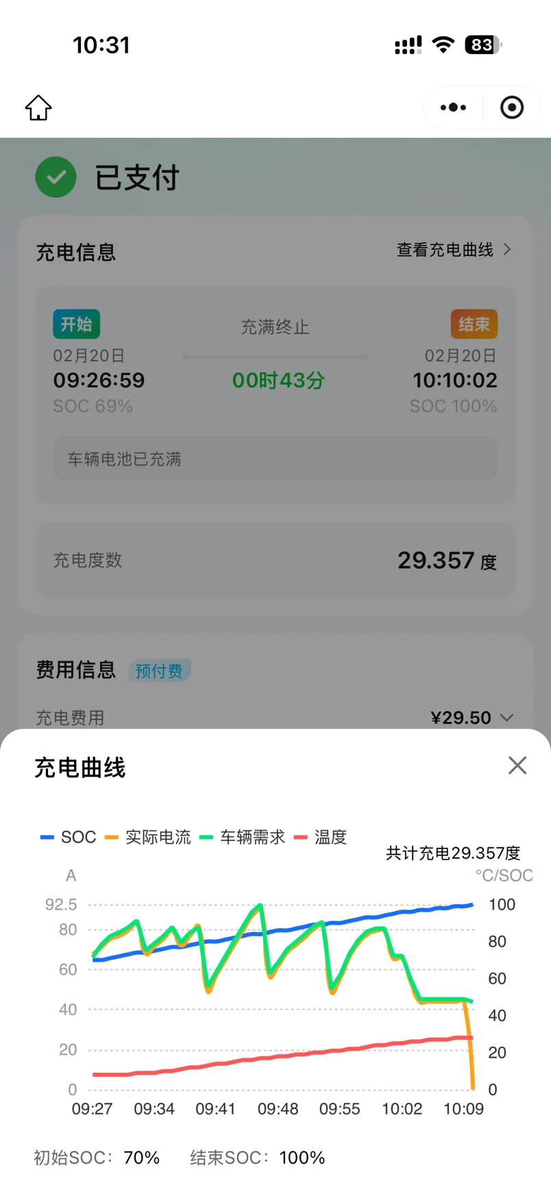 69到100用了43分钟 快充桩冲的 正常吗 这是早上冲的