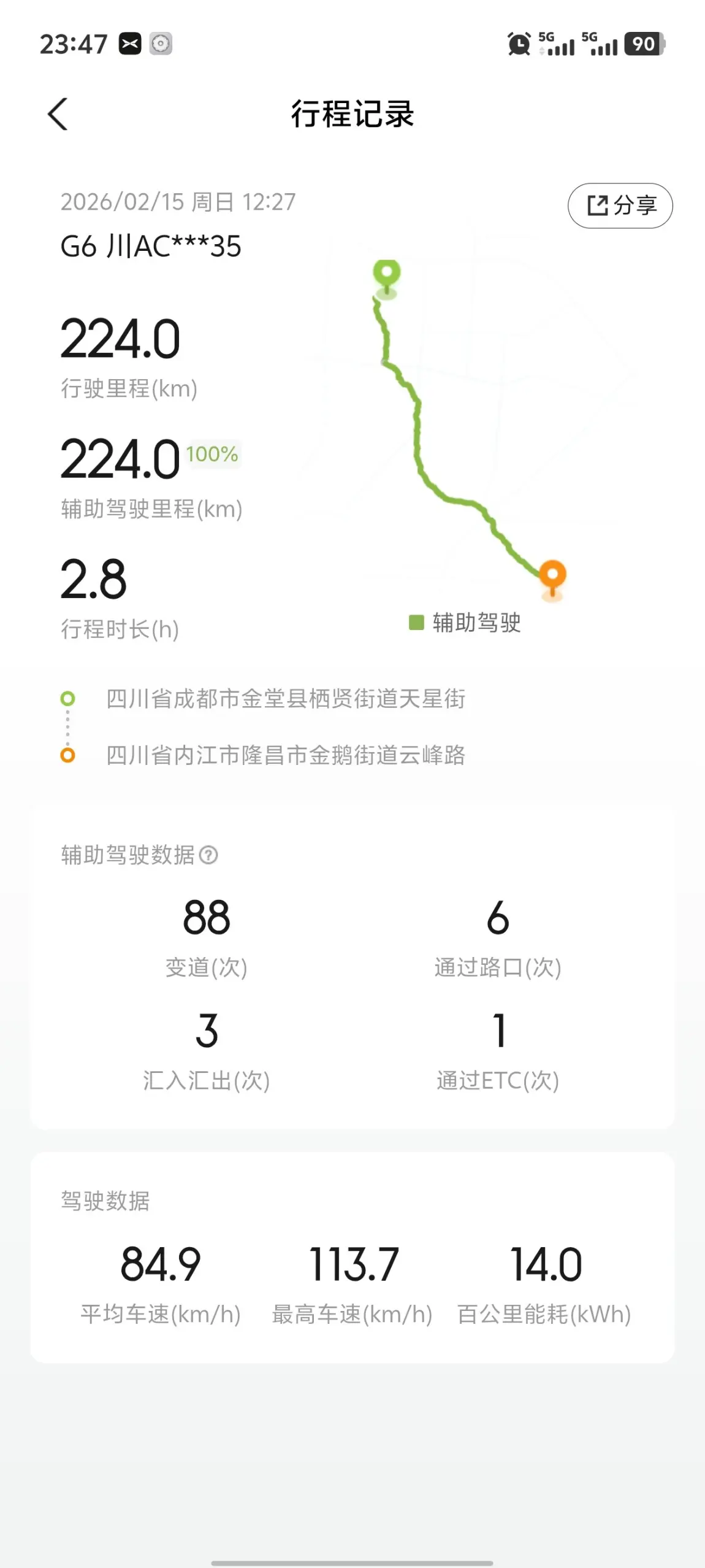 全程224公里全智驾。