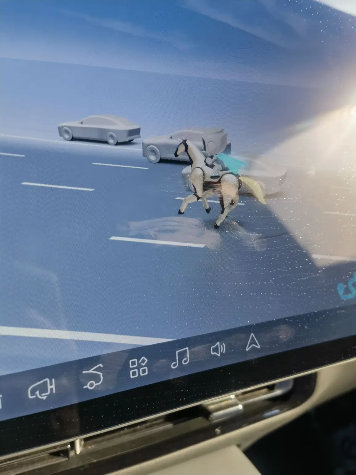 新年马元素,最简单的就是在小鹏坐舱里面,小鹏新年提供的那只 :马到成功。