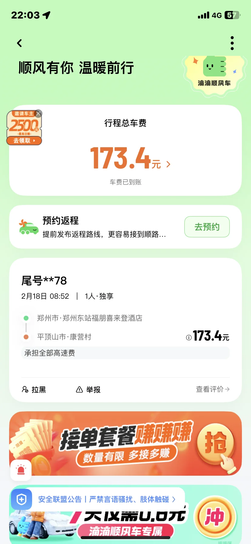 拉了两单顺风车,该说不说这钱也挣了亲戚也串了