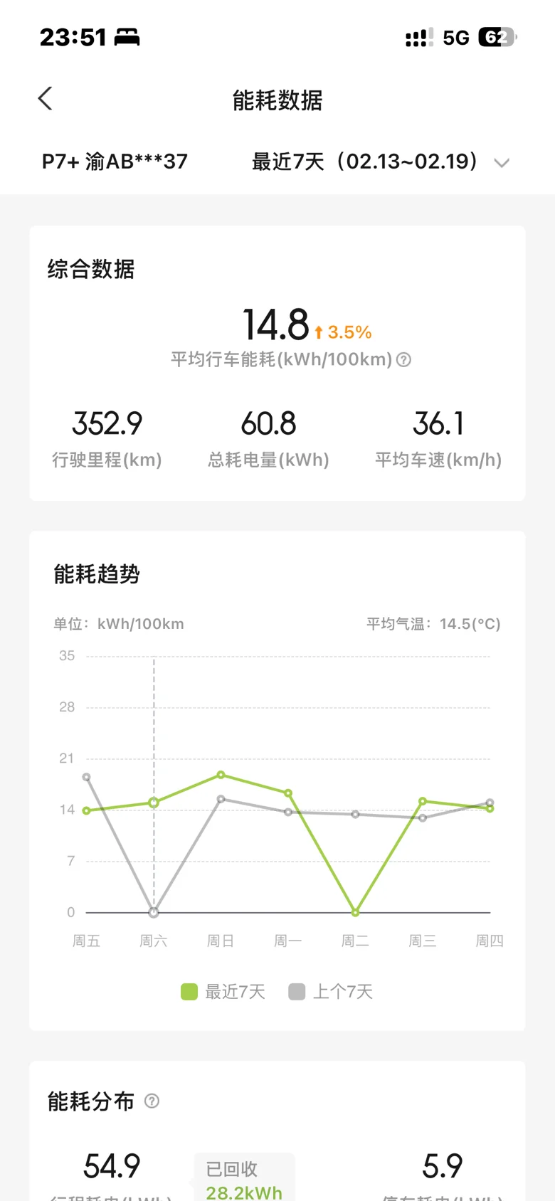 表显综合能耗:仅 14.8 kWh/100km