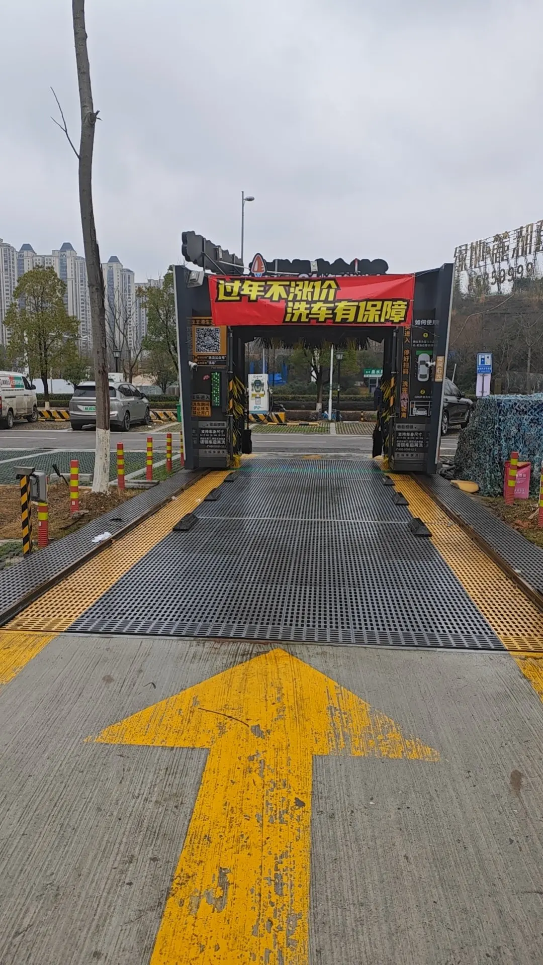 最值得夸的是这个充电站的配套设施,堪称“出行补给全能站”!充电之余,我发现站内配有无人洗车机,春节期间还挂着“过年不涨价 洗车有保障”的横幅,给爱车做个清洁再出发,仪式感直接拉满。站内还设有干净整洁的卫生间,解决了出行刚需;旁边的运动休闲区更是贴心,充电时可以散步拉伸,缓解长途驾驶的疲惫,兼顾了补能与休憩的双重需求。
