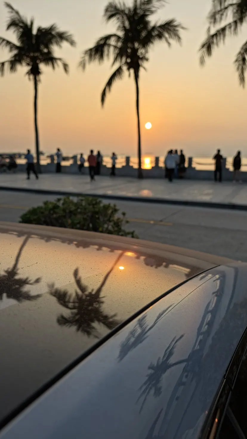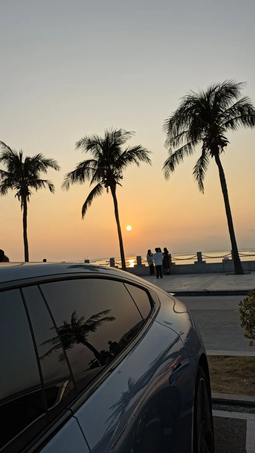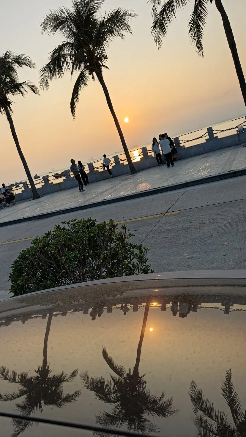 刚好赶上东平镇大澳渔村的日落,停好P7,发现玻璃上的日落也很不错🤩