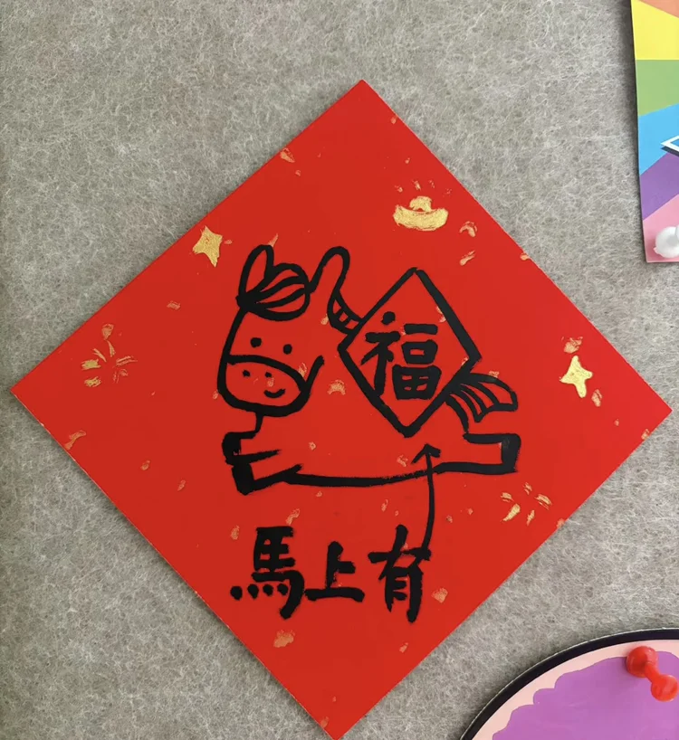 我家春联就是马的元素了,马上有钱,今年是马年,祝大家马上有钱!事事顺利!天天开心!