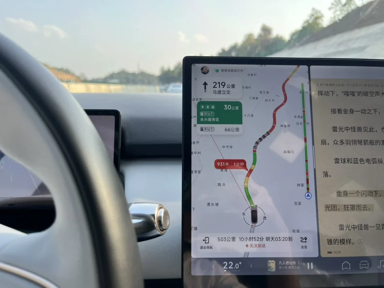 长途驾驶最考验精力,尤其是高速路段,稍不留意就容易疲惫。但有小鹏P7+的智驾功能,全程都让我安心不少。不堵车的时候,一路开启高阶智驾,车道居中稳稳当当,变道超车干脆利落,过弯道、上下匝道都十分精准,车辆的智驾反应操控也很平稳线性。我只需轻扶方向盘,留意路况即可,大大减轻了长途驾驶的压力。