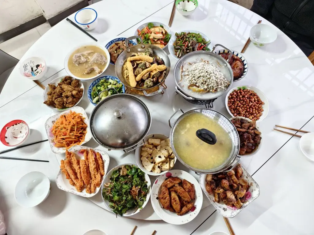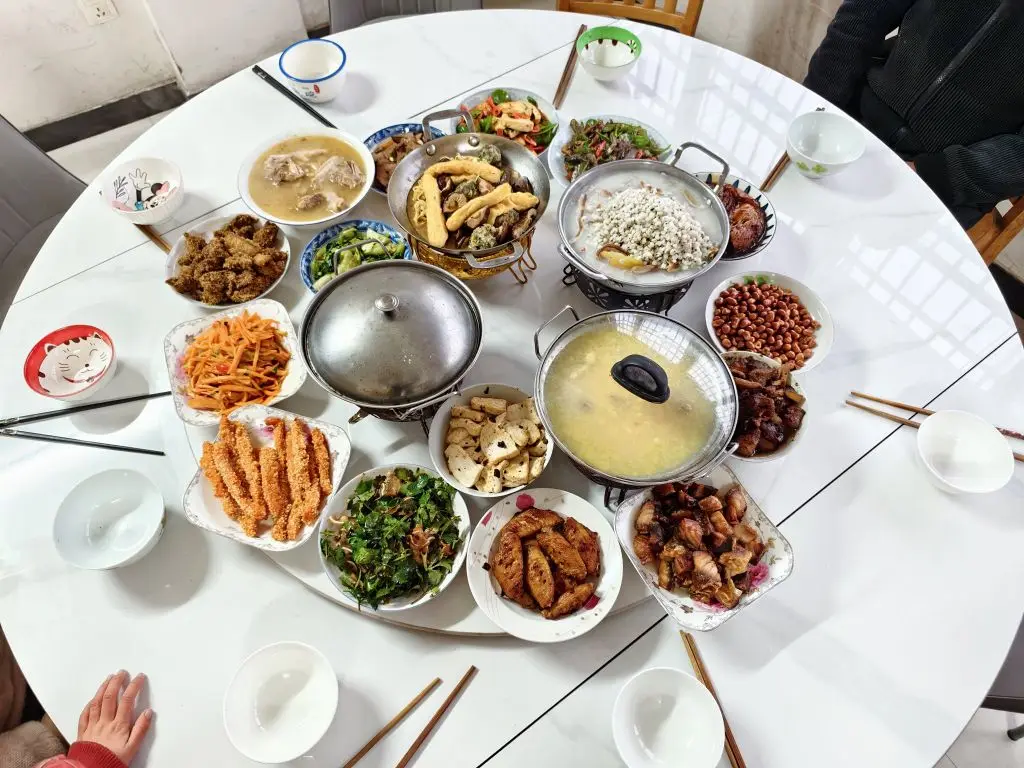 #定格我的精彩瞬间# #开着小鹏回家过年# 定格我的精彩瞬间,当然是要把年夜饭拍给大家看一看喽,每年妈妈都会准备丰盛的年夜饭,从早上起床,妈妈就开始忙碌,到了5点,我们关门吃饭,我们当地的习俗是吃饭之前门不能开,不然就把财气给泄了