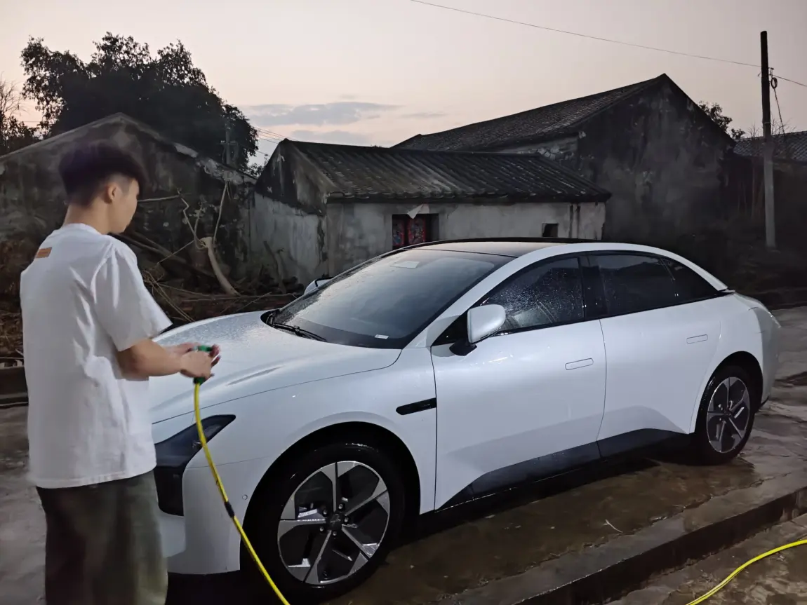 “老家的傍晚,洗车也是种享受。小鹏M03陪我回村,颜值在线,回头率满分。”