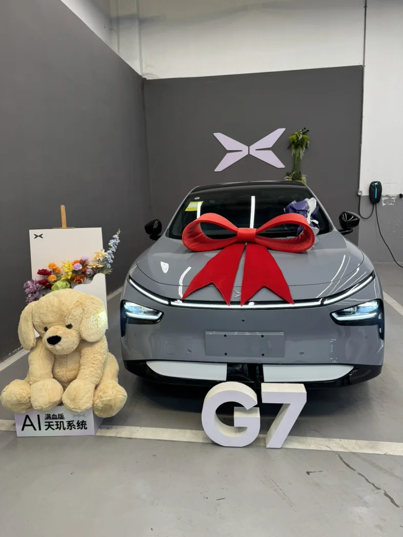 因为男朋友开的也是小鹏P7+,所以一开始没看小鹏,后来发现这个价位啥都想要也只有小鹏了,很适合年轻人,SUV真的好帅!不过我最爱的还是这个颜色~对比G6和G7,选了HUD的G7,续航474km(我配了20寸的轮毂),我日常通勤才50公里,偶尔跑高速、周边游完全够用,空间也很大,后排还有小桌板,化妆吃东西都超方便,实用性拉满!