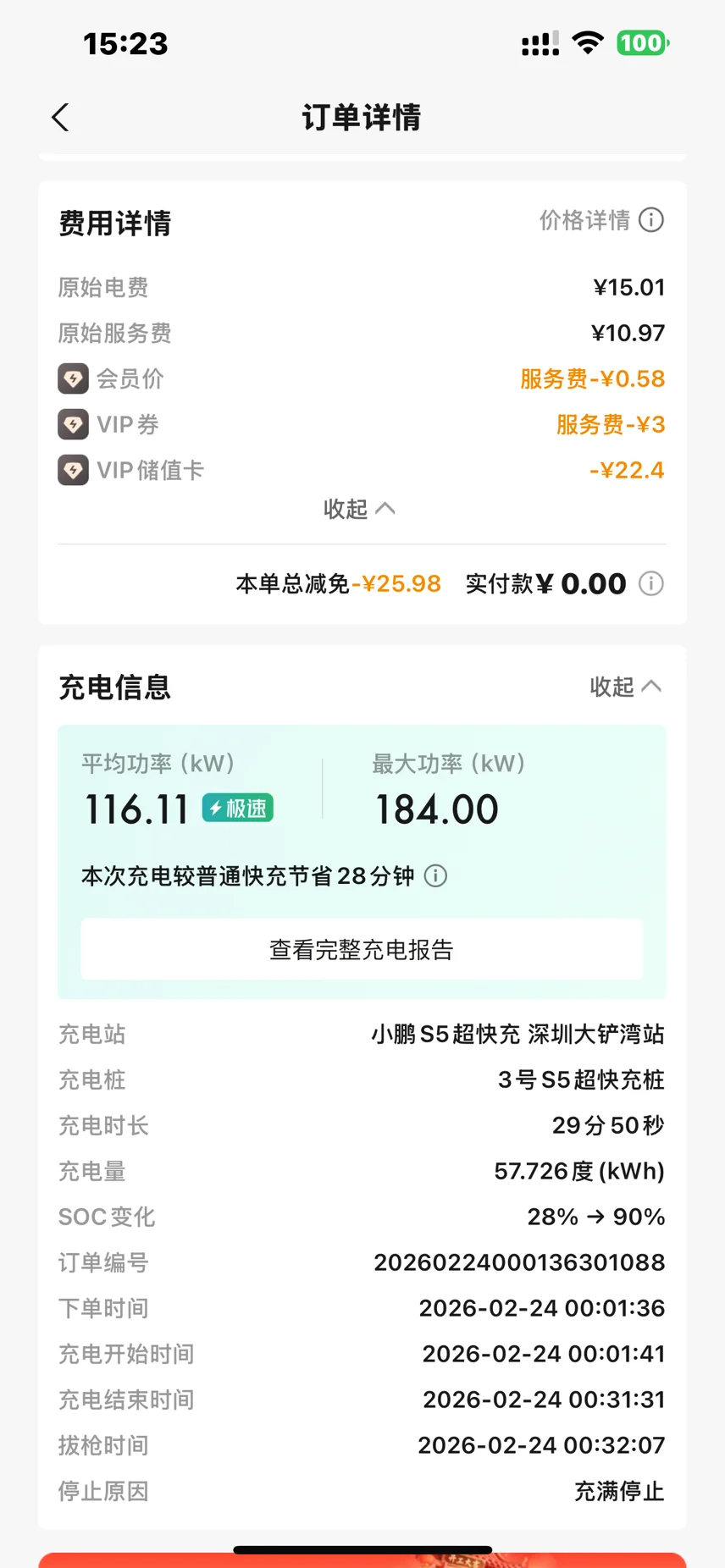 分享下深圳宝安区的宝藏充电站:大铲湾s5充电站。一共有18个桩,其中6个是超快桩。这都不是事,最重要的是!!0点后只需4毛4一度电!!!晒一下我的新p7充电账单。这次我春节回来,充电58度电只需25块左右,当然是叠加了过年的免服务费券,但是也非常便宜了#鹏友充电攻略# 开着小鹏回家过年#