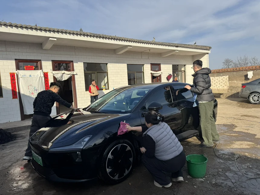 帅黑座驾,满载年味归家,小鹏M03大后备箱,装得下思念,也装得下团圆。一家人手动洗车、闲聊、晒太阳,简单的快乐,最是心安。