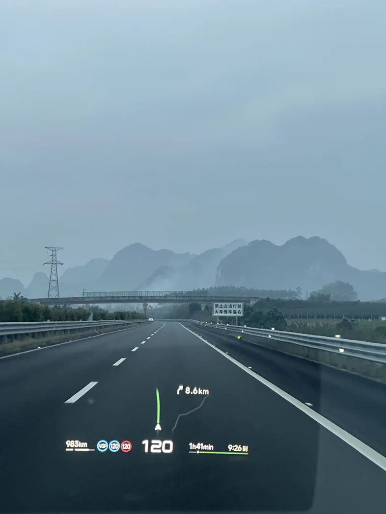春节一家四口武汉自驾防城港 钦州 崇左 南宁,往返3400公里,出发一口气920公里开到柳州,满油满电出发高速基本120NGP,到柳州剩余续航130多,开了9个半小时,家人都不觉得累,广西气温20左右纯电能跑出表显里程。一家四口把行李装好也只用到了50%左右容量,空间从从容容游刃有余。返程时在湖南遇到堵车,跟车用智驾也很省心,但是车流量大的路段不太稳定,减速时机有点晚,两车道都堵车还变道,不如自己开。路上还遇到了大雨,智驾就不能用,看到华为理想依然开着智驾在跑。总体来说这趟行程对车辆很满意,绝对的奶爸神车👍