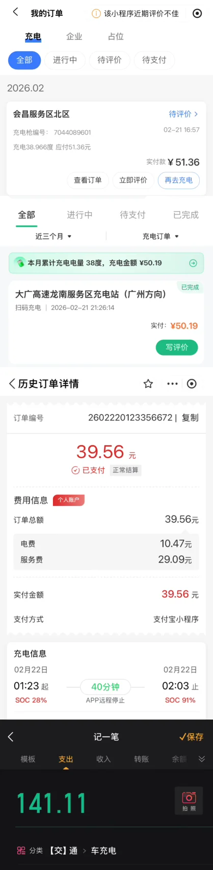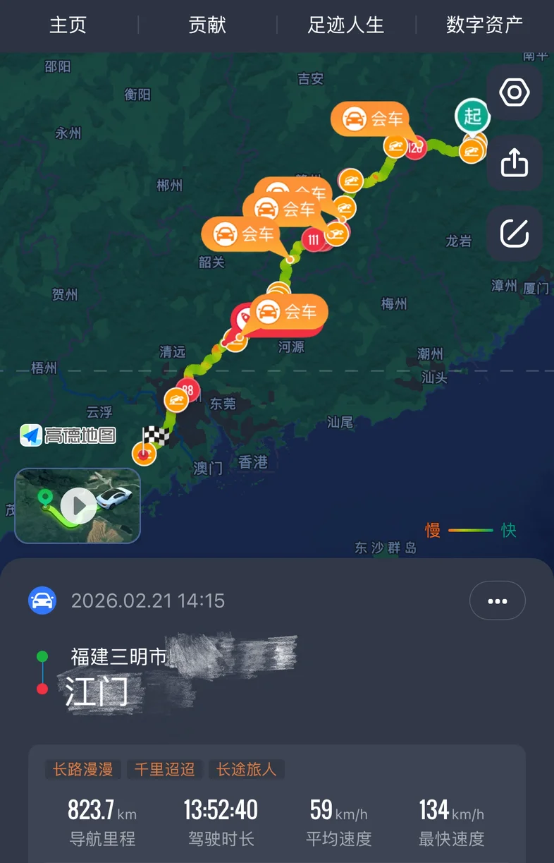 方向盘掌握在自己手里就是爽啊!我的小鹏友已经陪我1370天了走过了7.4w公里2月开着回家过年去的时候边开边玩回来就是一鼓作气,单程八百多公里加上堵车一共开快14个小时,如果没在那个只进不出的充电站等待一个小时四十分钟还能更快些[得意R]差不多开三小时左右就去充电休息一下,对我来说刚刚好823.7公里高速充三次电花费141.11元这次返程极大增加了我日后自驾回家的信心新年快乐🎉小鹏友,要一起走更远🚗(和我的小红书同步一下)#开着小鹏回家过年#