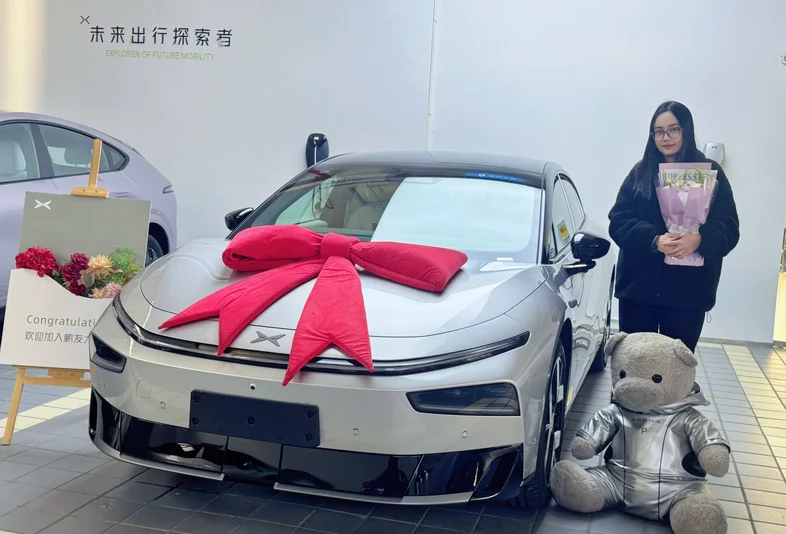 #我的提车作业# 家里有一辆a级油车,这次增购一辆车,首先想要的就是大空间,一开始看了凯美瑞,但是后排空间还是差点意思,带娃舒适度不是很高。后来去商场试驾了p7+,一眼就心动了,一周后就火速下定了,四天就提车了,年前就拿到了新车🚗提车的时候销售小姐姐还送了花花,超级惊喜。新车开起来舒适度比日系的油车高很多,隔音也很好。重点是智驾也很nice,过年载了一后备箱的年货回家过年啦,提车不到一个月,开了2800km了,可见有多好开了😍
