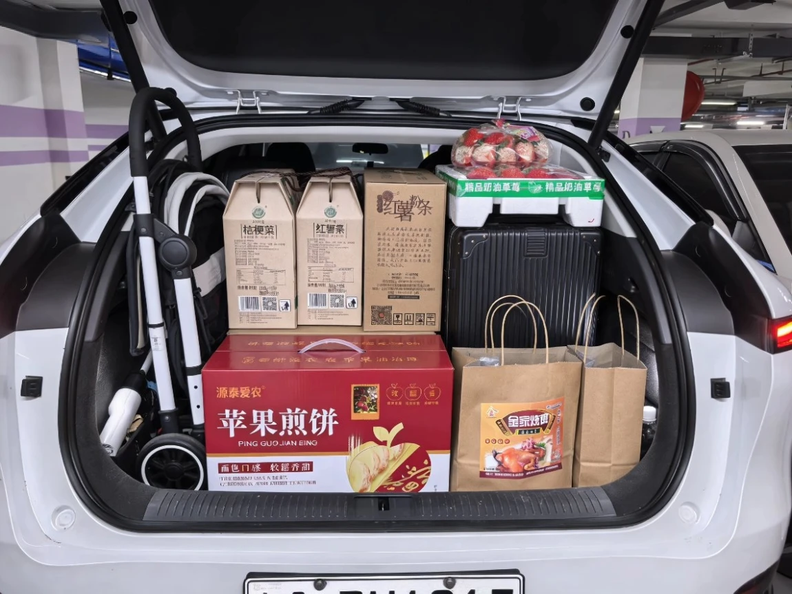 #定格我的精彩瞬间# 开着小鹏回家过年 过年开着小鹏G6回老家,这后备箱的“魔鬼空间”真的给了我超大惊喜!上层被本地的桔梗菜、苹果煎饼,还有胖东来的白酒、熟食塞得满满当当,折叠婴儿车贴心靠边摆放,行李箱上的草莓盒也稳稳当当。最绝的是后备箱下层的隐藏空间,把孩子的小玩具、备用的母婴用品全塞进去,瞬间腾出更多上层位置,一点不浪费。小鹏G6这空间设计太懂家庭出行了,装满的是年货,更是沉甸甸的年味和对家人的牵挂!