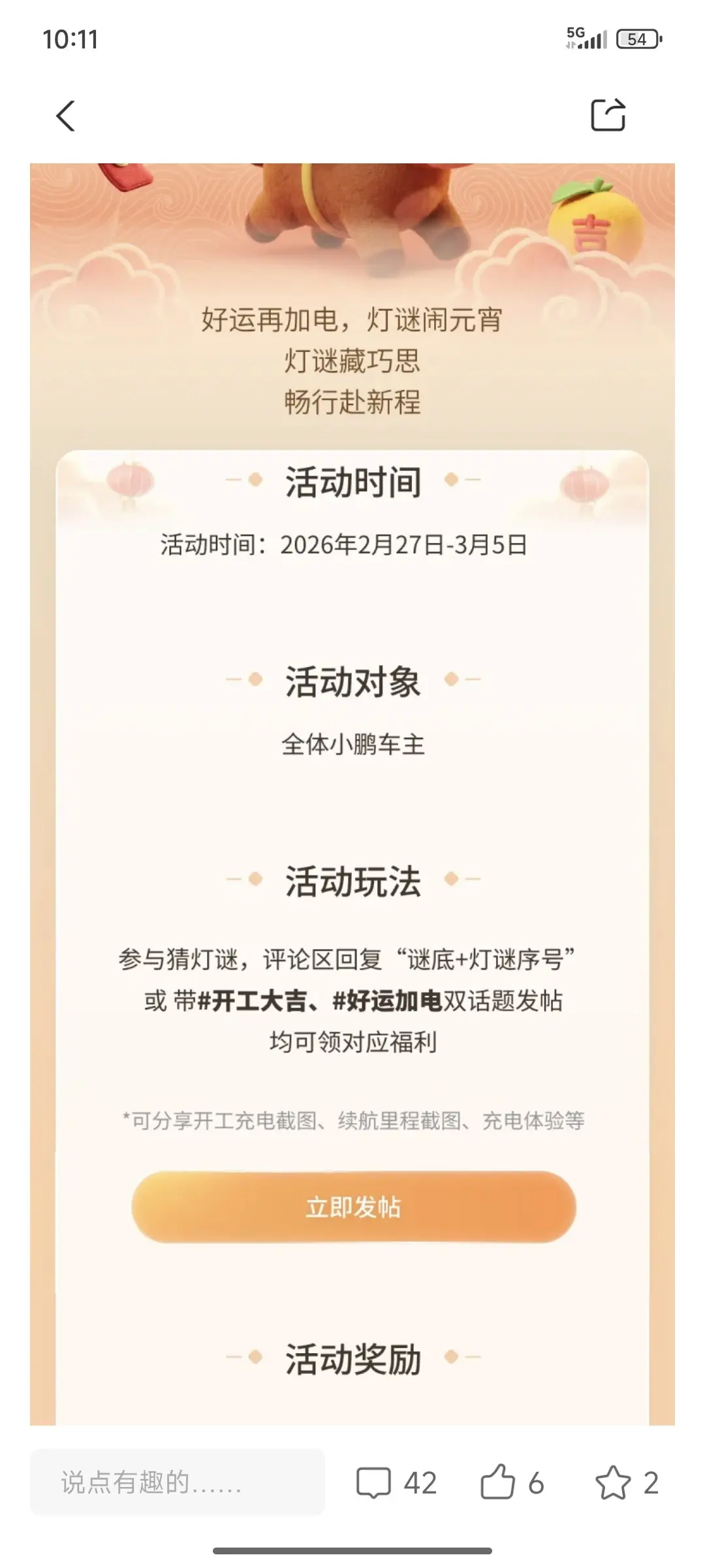 开工大吉,好运加电,小鹏汽车开工福利第三弹开启,让我们一起加电。