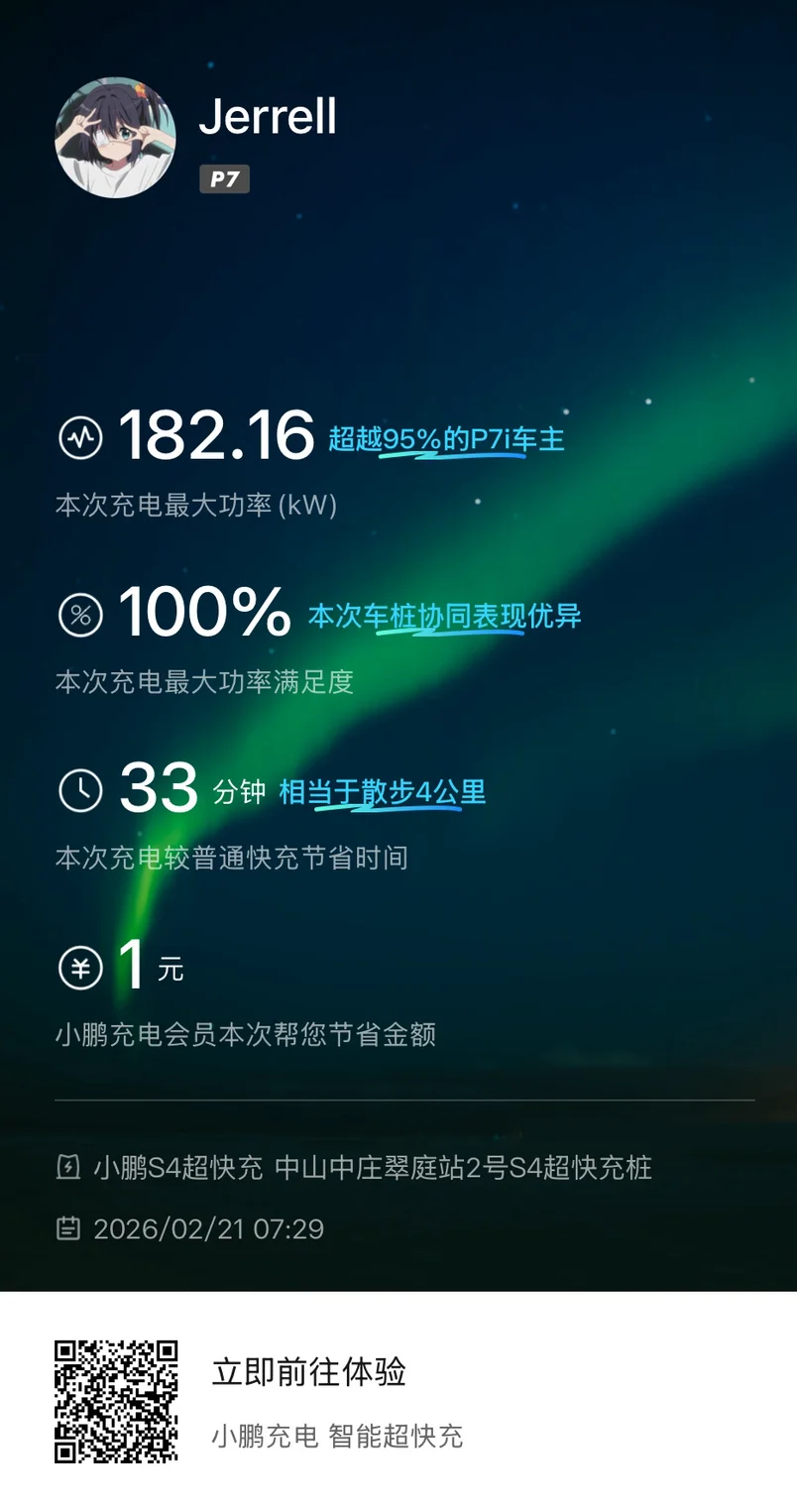 还得是小鹏自营充电,速度很赞,体验超好,过了零点还是很实惠的