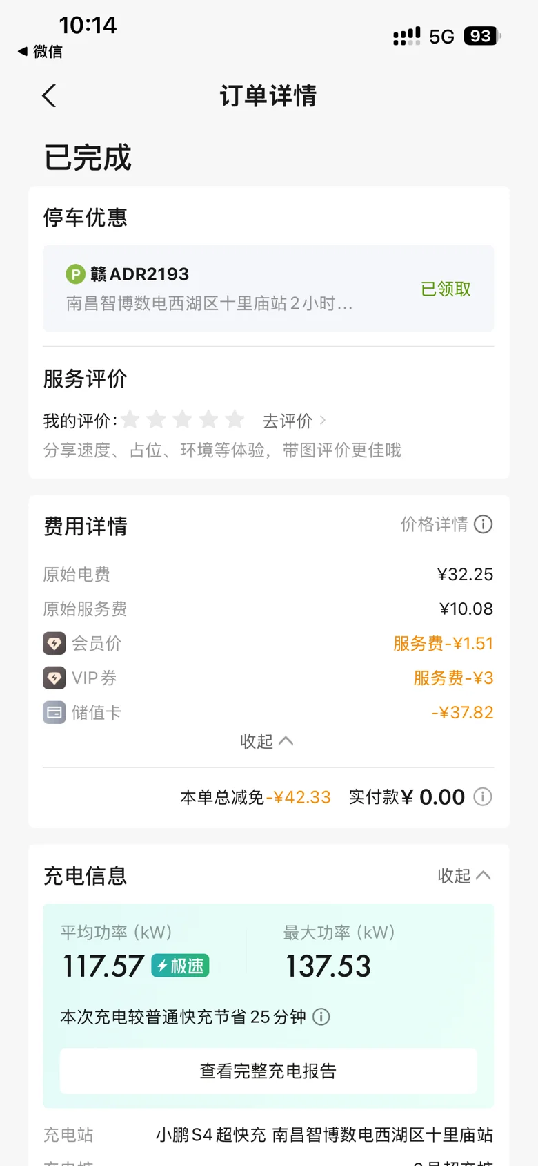 开工回来的路程历经磨难,小鹏超充的体验舒舒服服。一顿饭的功夫,电就充好啦