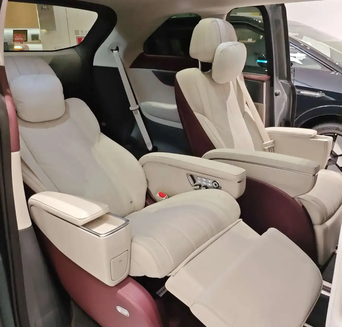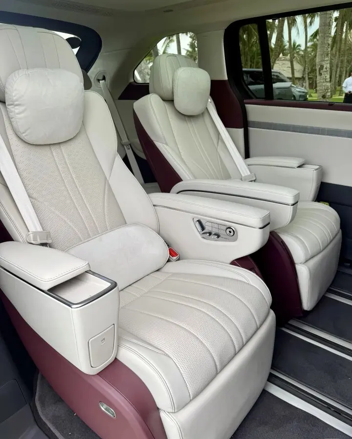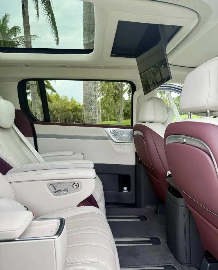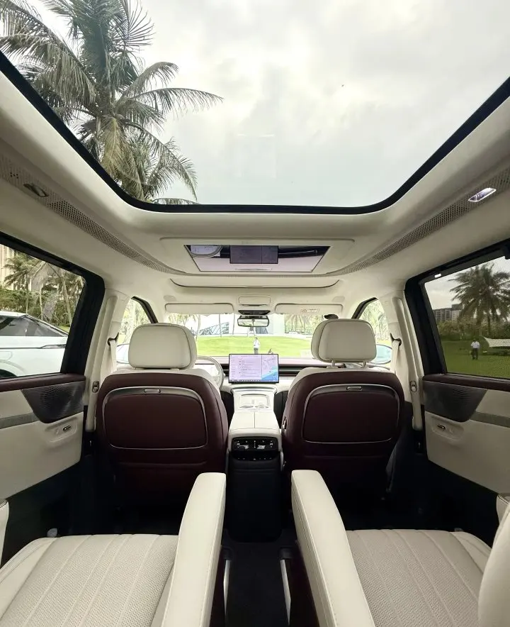 确实显得很特别,空气悬挂+后轮转向+冰箱+彩电配齐了。中排座椅通风/加热/按摩/小桌板。#深圳·月租·年租的欢迎联系#