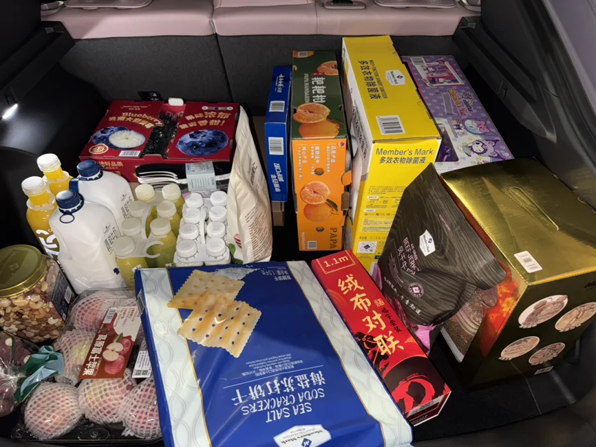 后备箱塞的满满的,小鹏后备箱真的很能装,体验感非常棒