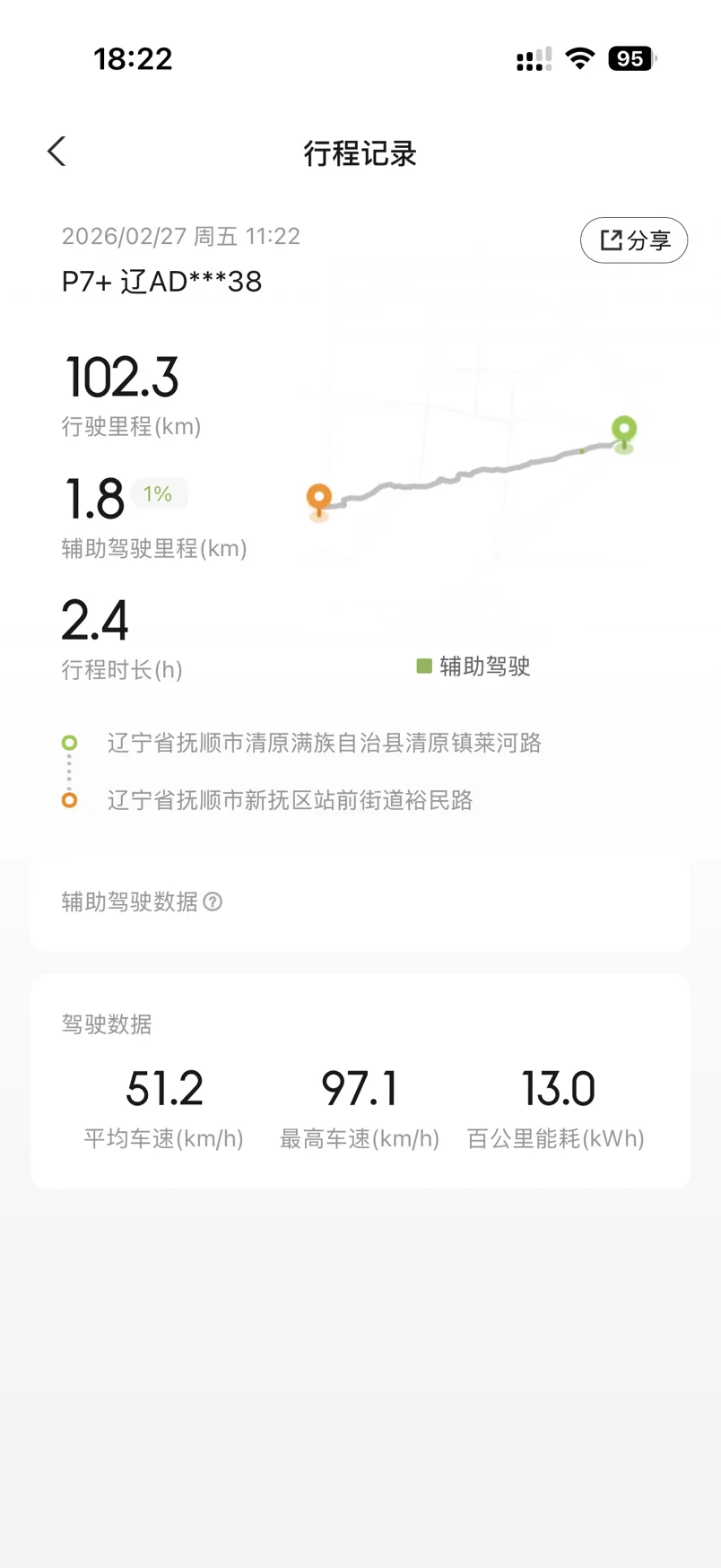 东北的天暖和了 现在百公里电耗越来越低了