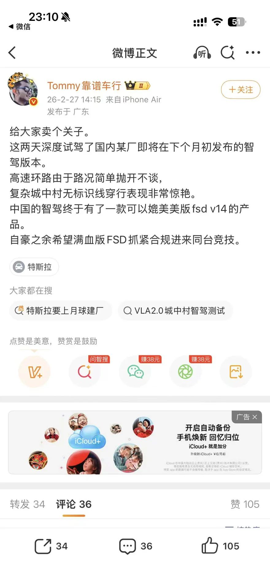 vla2.0三月2号发布,我们max老车主三个月内也会进行推送。兄弟们可以期待下2.0,要和fsd对齐了😏