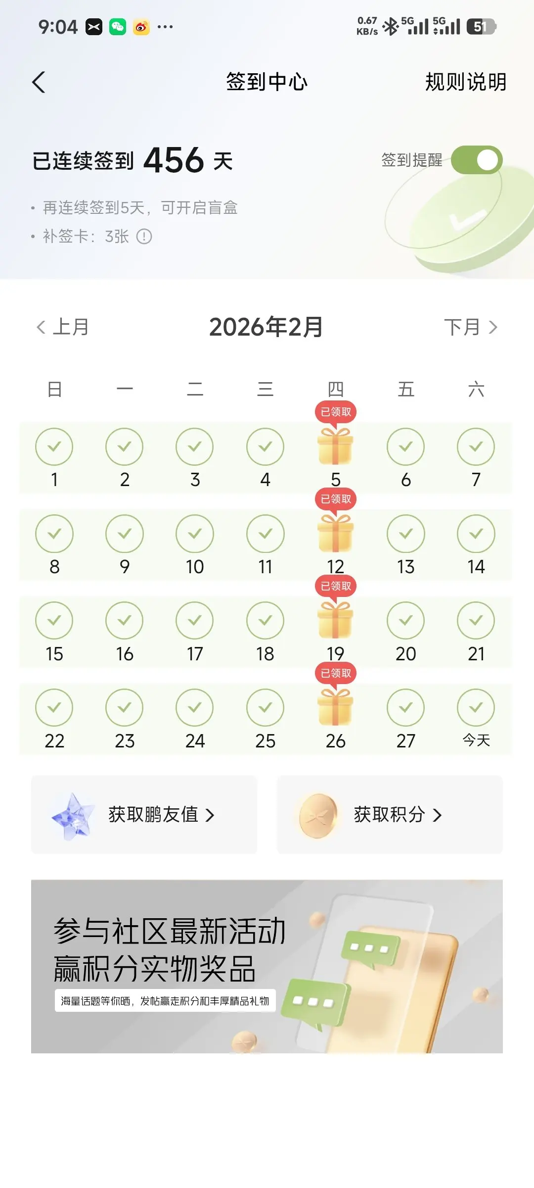 中途貌似用过2次补签🤔