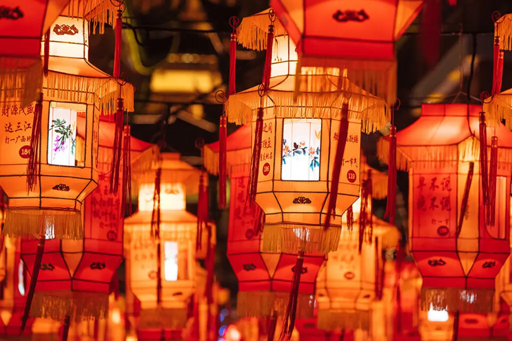 提灯漫步,笑语盈盈,流光溢彩间,