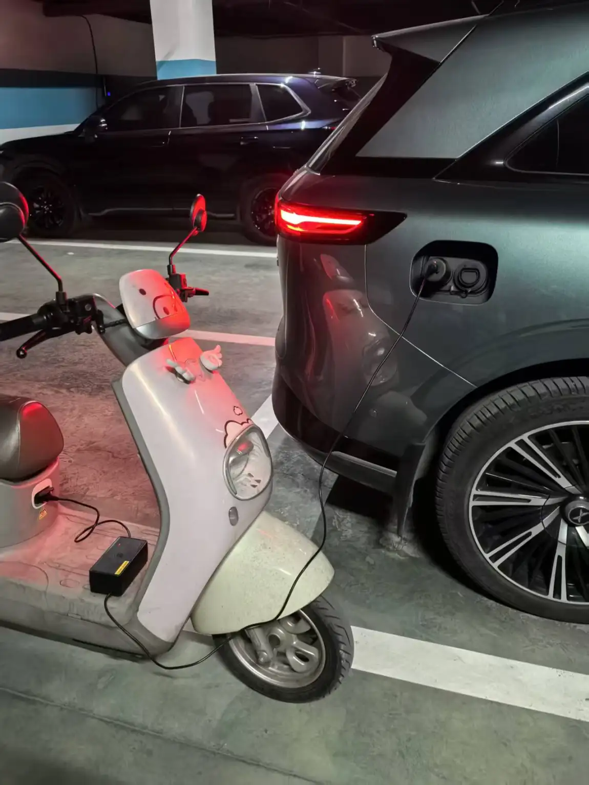 不止露营煮火锅、带家电,我亲测能给小电驴补电!插放电枪,3.5kW功率稳稳输出,楼下邻居电动车没电,我停路边就能充,小区停电、户外应急、日常代步补能全搞定,操作超简单:插外放电枪→中控开放电→即插即用,新手也秒会。