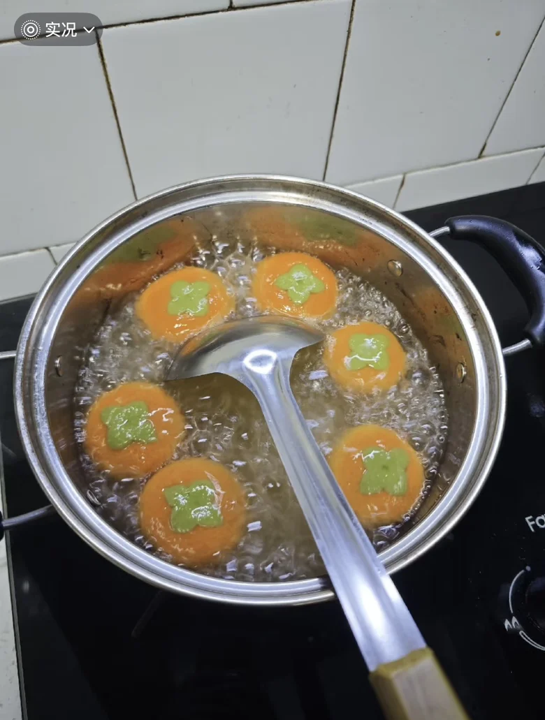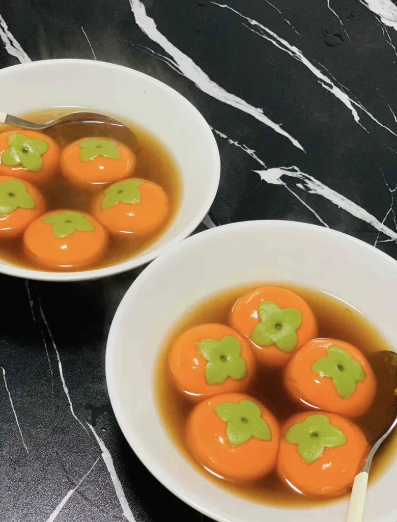 逛超市随手拿的速冻柿子元宵🍡,颜值也太能打了!橙乎乎的小柿子造型,看着就讨喜。水开下锅煮几分钟就浮起来了,咬一口黑芝麻流心直接爆出来,糯叽叽的超治愈~
