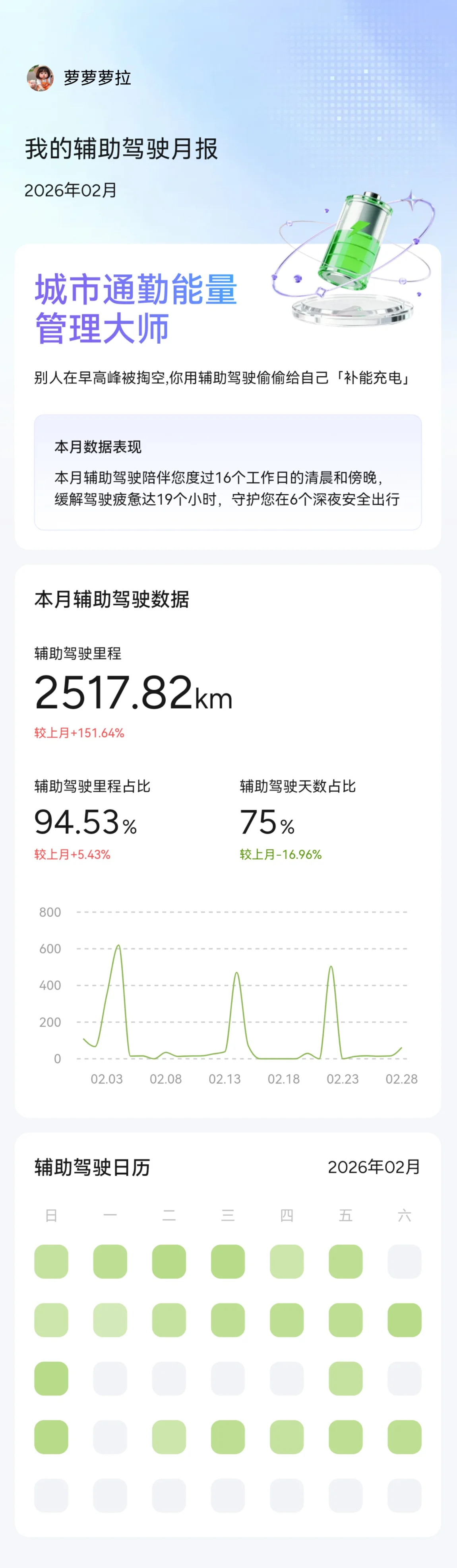 #我的辅助驾驶数据# 这款车的城市辅助驾驶特别好用,每天上下班必开,停车都是自动泊车,我的自动泊车次数可多了。这次过年也快回老家了,高速也非常好开,人家我一个人独自开车回家是搞不定的,又累又困,中间还要换人驾驶。有了小鹏m03,我一个人也能自驾回家了,这为我将来自驾中国游,奠定了非常好的基础。我真是太爱小鹏m03 max了。@智驾小助手 @小鹏友 @小鹏MONA @鹏友大管家 #我的辅助驾驶高光时刻# #小鹏MONA M03#