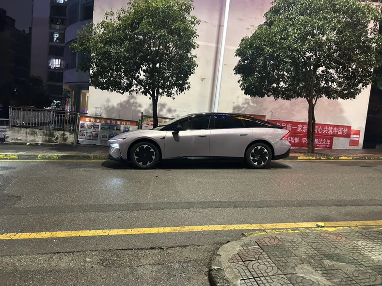 提车的第一天,P7+侧脸帅爆