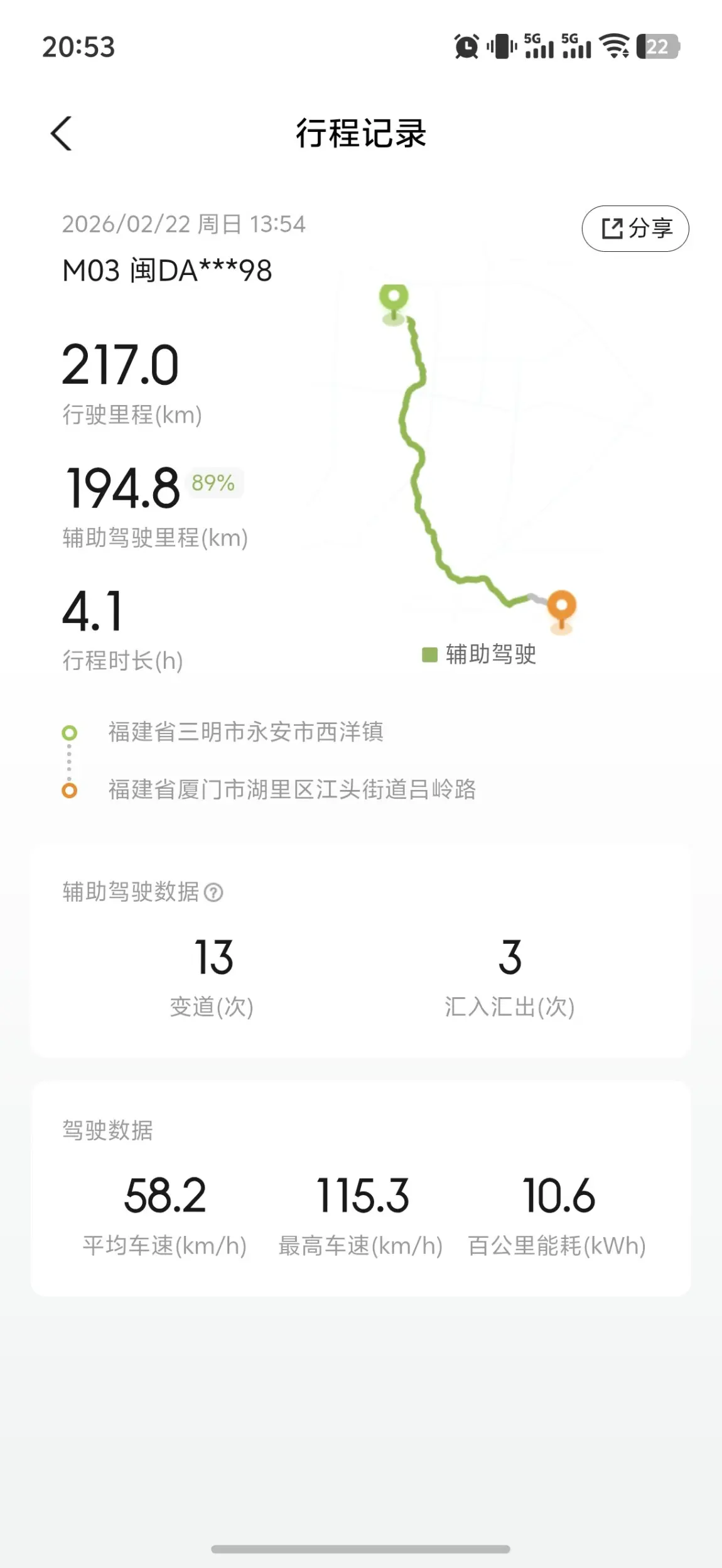 春节去了一趟永安,只能说这真是一个新能源友好城市,从民宿的山上开下来是一段接近20公里的下坡,全程不怎么踩刹车,直接充电冲了快20公里。回厦门的路上就更离谱了,出发时预估剩余20公里,到达后还剩80公里,高速上都是一路充电回来的,而且NGP哪怕堵了快一小时的车也没什么压力。只能说,人生第一个开车的春节,毫无续航焦虑,或者说,一开始有点焦虑,这之后我都不会焦虑了。到目前为止,一共开了1800公里,大概800公里都是春节期间开的,而且550公里的NGP,实在只能用赏心悦目来形容#开着小鹏回家过年# #我的辅助驾驶高光时刻# #鹏友充电攻略#