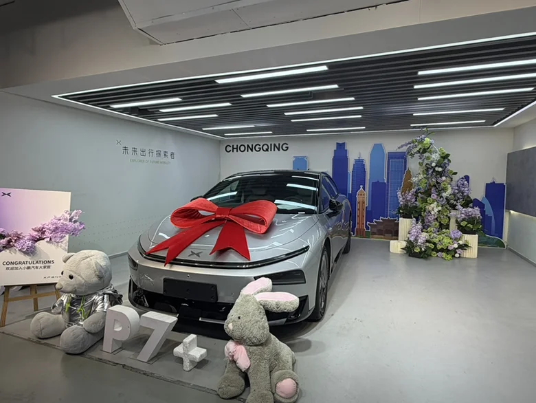 “喜提大玩具,交付中心的小鹏橙汁都快被我喝饱了。小鹏效率杠杠的!以后路上见到,记得滴——滴滴(暗号)。”