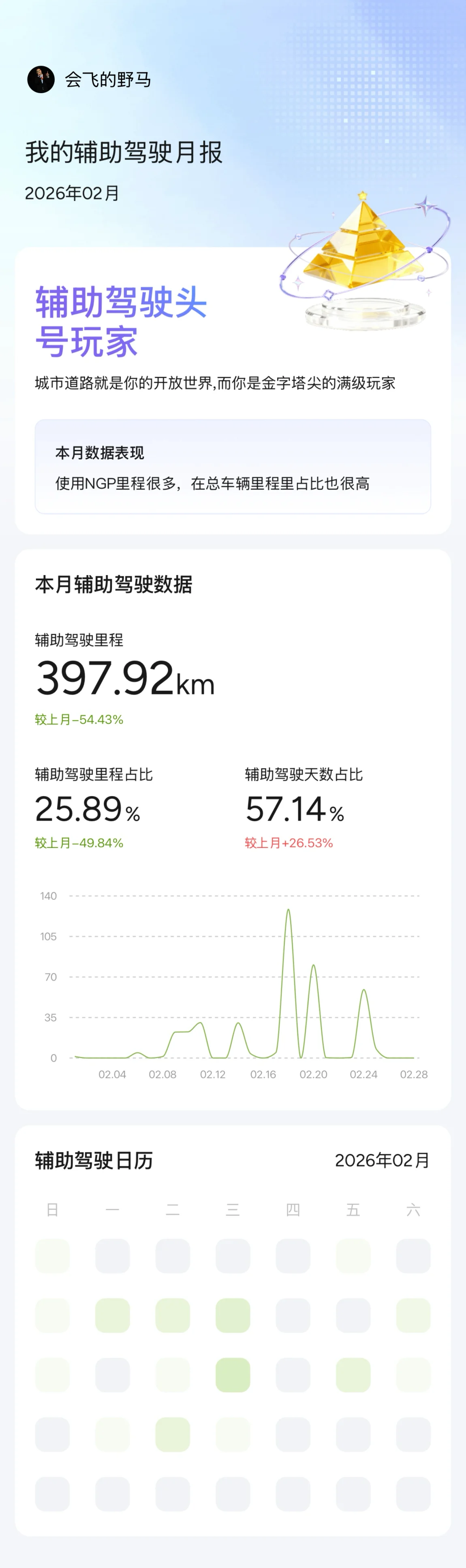 #我的辅助驾驶数据# 开得有点少呀