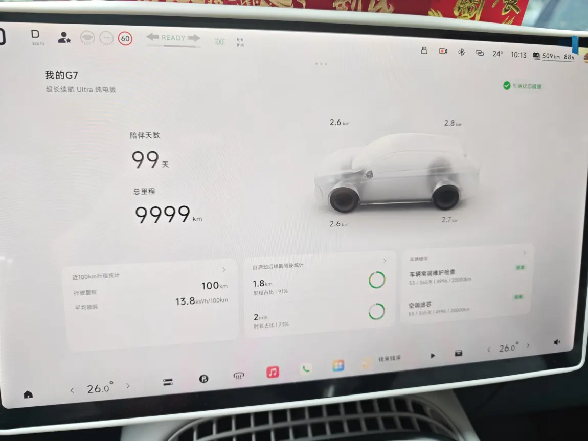#有鹏有年味# 今年是第一年,有小鹏的陪伴下从广州回茂名过年。我去g7的702,年26回家,想着起码要充一次电才能到家,因为估计回塞车和高速可能电不够,没想到开着ngp,只去了一次厕所就差不多到家了,到下高速前的一个服务区,想着多少还是去充个电,一看已经开始排队,再一看我预计到达剩余续航150km,那就不冲了,直接干回家。
