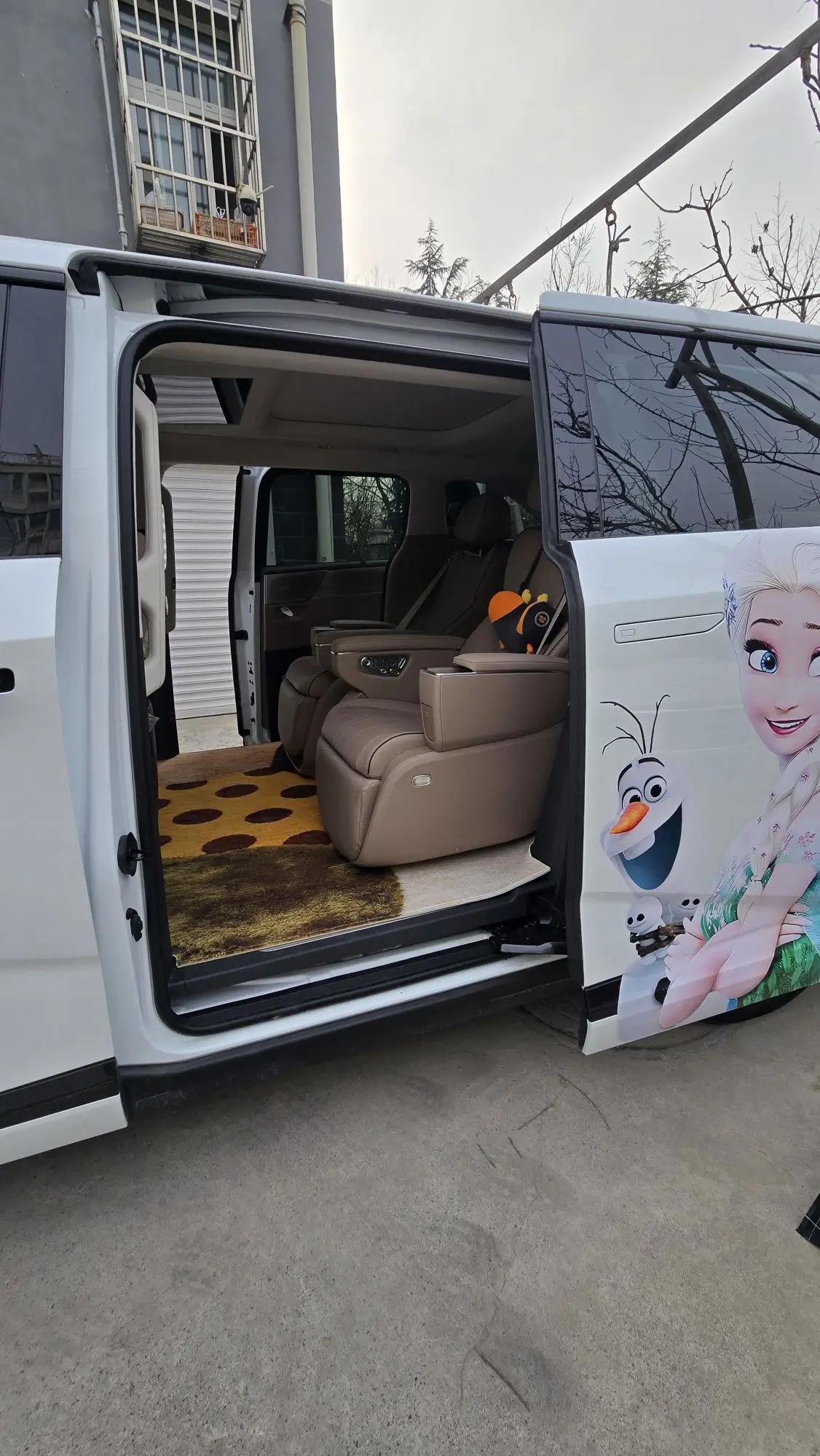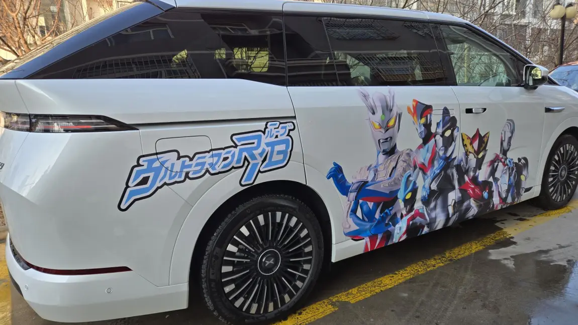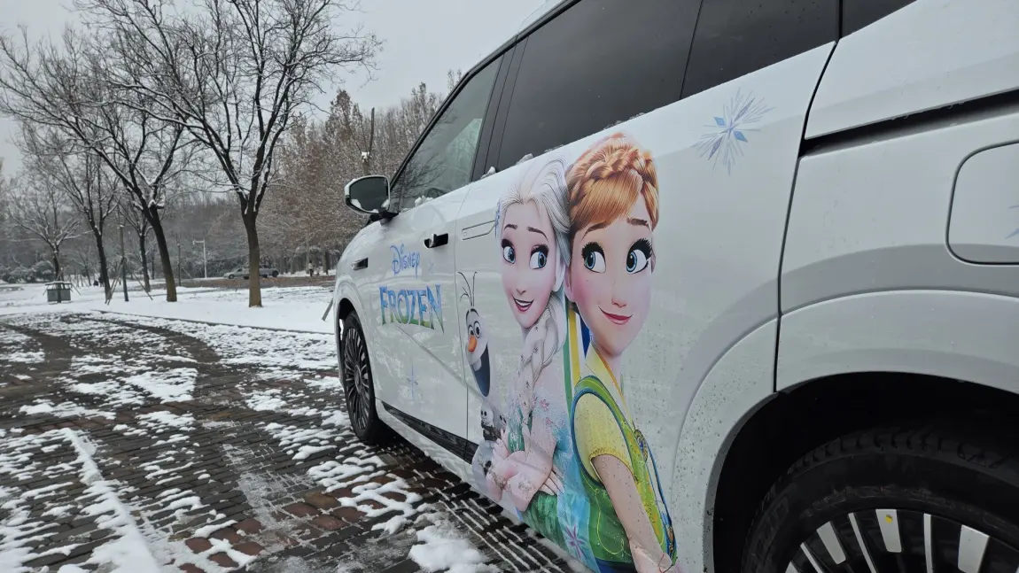 买车前就已经定好贴纸了。两个孩子一边艾莎一边奥特曼,不争不抢。都有属于自己的贴花。自己动手装贴也不是很难。效果孩子也很满意。走在路上回头率让我有点社恐。每天接送孩子上下学也是让小朋友们很好奇。又自己手搓了地毯。成就感满满。 , 来自#小鹏汽车#小鹏X9#小鹏x9改装#汽车改装