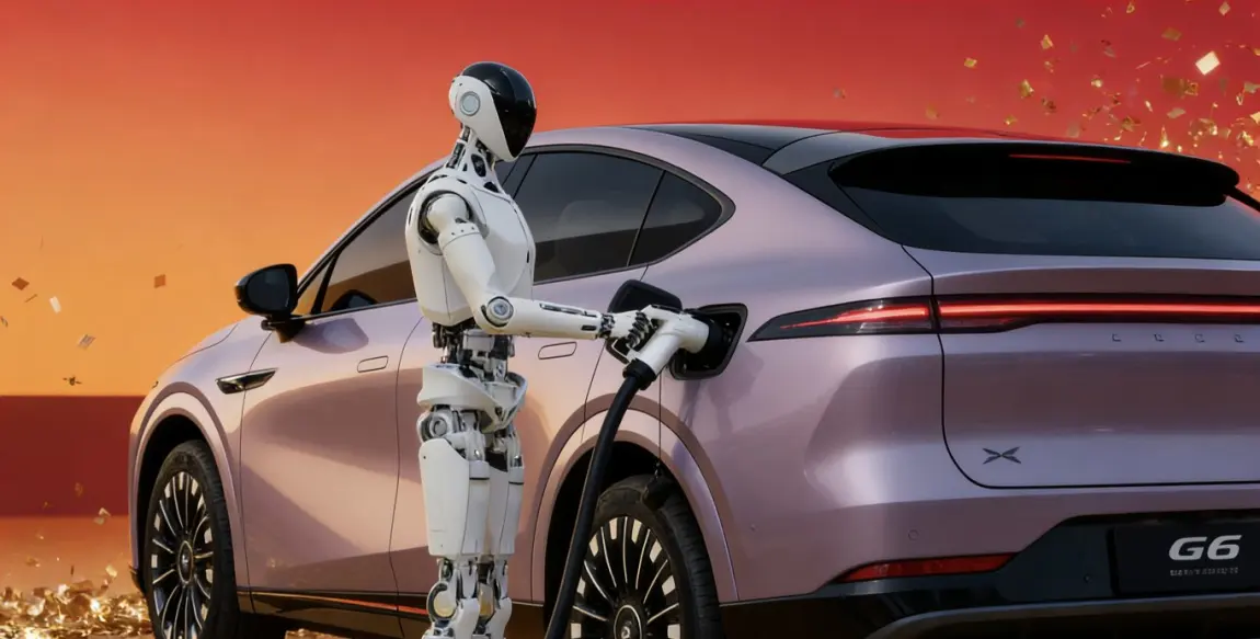 #鹏友共创# 小鹏创意车贴制作灵感1.由于自己的座驾是小鹏G6,所以以小鹏G6为主要背景。2.由于电车最重要的就是充电,所以融入了充电的因素。3.由于未来机器人是一个大方向,是未来产业,而小鹏iron人形机器人十分具有代表性,所以加入了iron。综合以上三点,形成小鹏iron为小鹏G6充电的车贴。@社区活动小姐姐