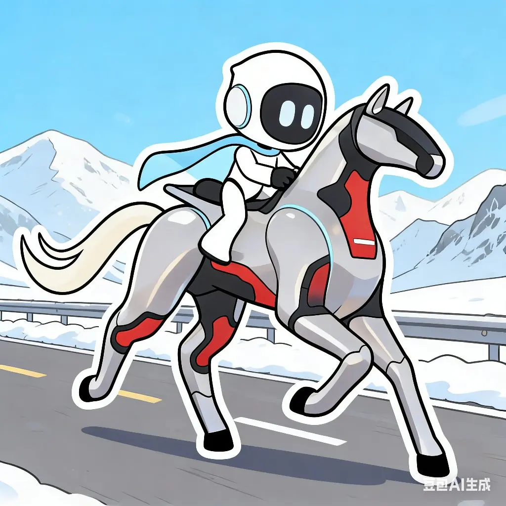 #鹏友共创# 这款车贴以小鹏汽车的智能形象小P为主角,将科技与国风巧妙融合。小P身着标志性的银白机甲,骑乘在一匹充满未来感的机械马上,马身的红黑线条与小鹏的品牌色遥相呼应,流畅的光带则象征着智能科技的无限动能。 整体采用简洁明快的卡通插画风格,线条圆润可爱,色彩干净明快,既保留了科技感的酷,又不失萌趣。无背景的设计让车贴能完美适配车身,无论是贴在车门还是后窗,都能瞬间成为吸睛焦点,寓意着小鹏汽车将陪伴每一位鹏友,以智能之姿,驰骋于时代的快车道。